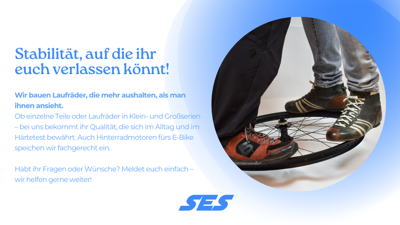 Bei uns findest du hochwertige Teile für dein perfektes Laufrad: Felgen, Naben, Speichen und mehr. Schnell, zuverlässig, mit Leidenschaft fürs Rad.
