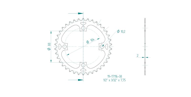 Eigenschaften "Kettenblatt für BOSCH Gen 1, 3 und 4 schwarz 38 Zähne"