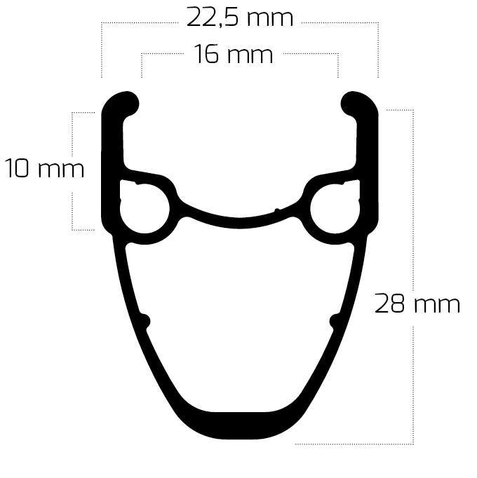 Diese V-förmige Rennradfelge überzeugt durch ihre außergewöhnliche Festigkeit, die sie durch das hohe Profil und die Verwendung von hochwertigem Aluminium erlangt. Mit einer Innenbreite von 16 mm ist sie sowohl für klassische Rennradreifen mit 23 mm als auch für breitere Randonneur-Reifen mit 32 mm geeignet. Ein idealer Allrounder für Rennräder.